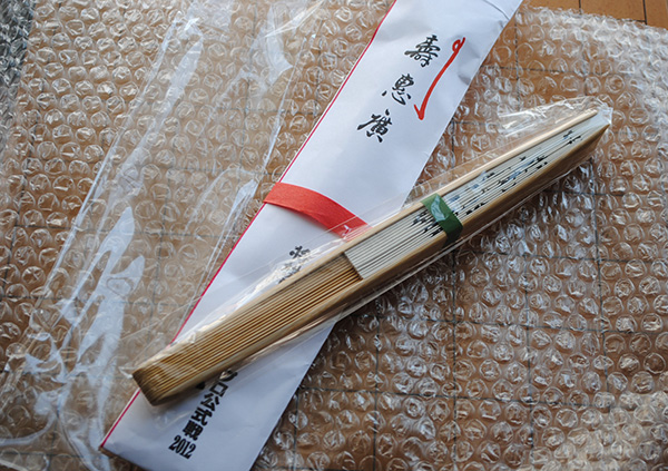 扇子は持ち手が細く、先に向かうにつれて広くなっている。つまり末広がりだと。それで扇子は別名「壽恵廣」と称するのだそうで。ひとつ勉強しました。